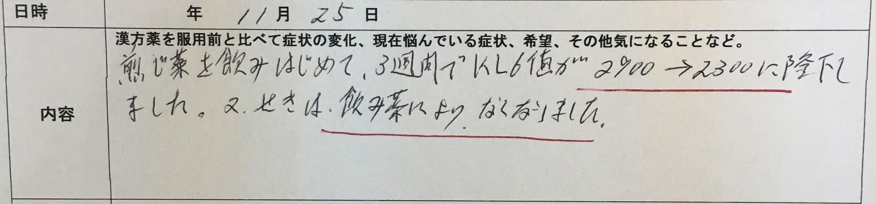 しているということでした。おそらく、漢方薬の煎じ薬の効果かと